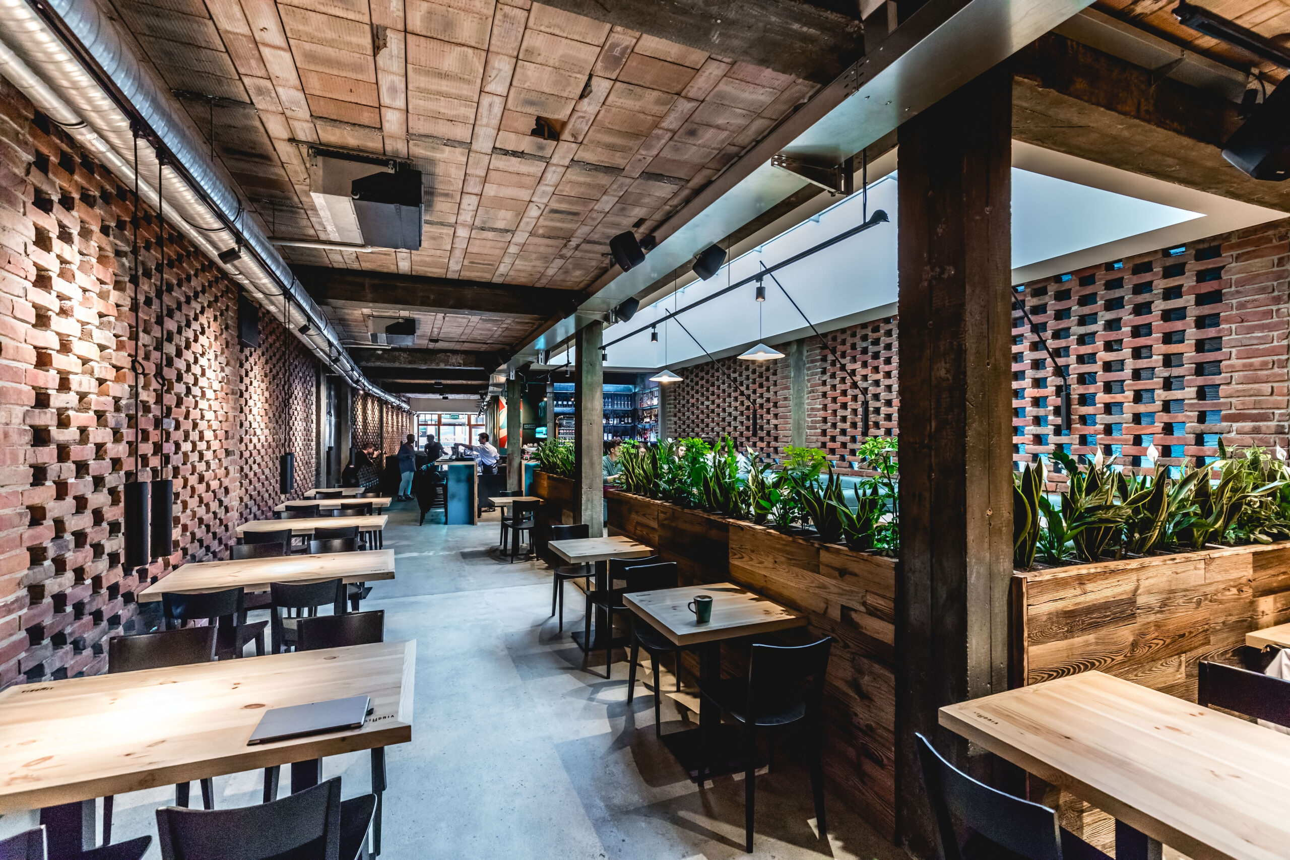 Ein weiteres Beispiel Dekorative Ziegel ist eine antiqued Backsteinfassade, erstellt mit den melange Schattierungen: Orange, Kirsche und rot. Es sieht interessant vor allem in großen Innenräumen, wie in den Bildern zu sehen in galerie.