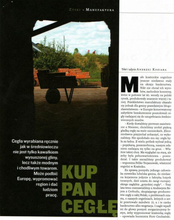 Kleine Kraśnik Ziegeleien bis vor kurzem am Rande des Bankrotts stand. Niemand wollte ihre Produkte westliche Unternehmen, die Polowice 90er Jahren auf dem polnischen Markt getreten ist, und produziert viel billiger. Der Fluch Manufakturen sich jedoch herausgestellt, für die Gemeinde wahrer Segen – Europa preservationists erfolglos einen Ziegelstein für das Füllen der mittelalterlichen Mauern um gesucht.