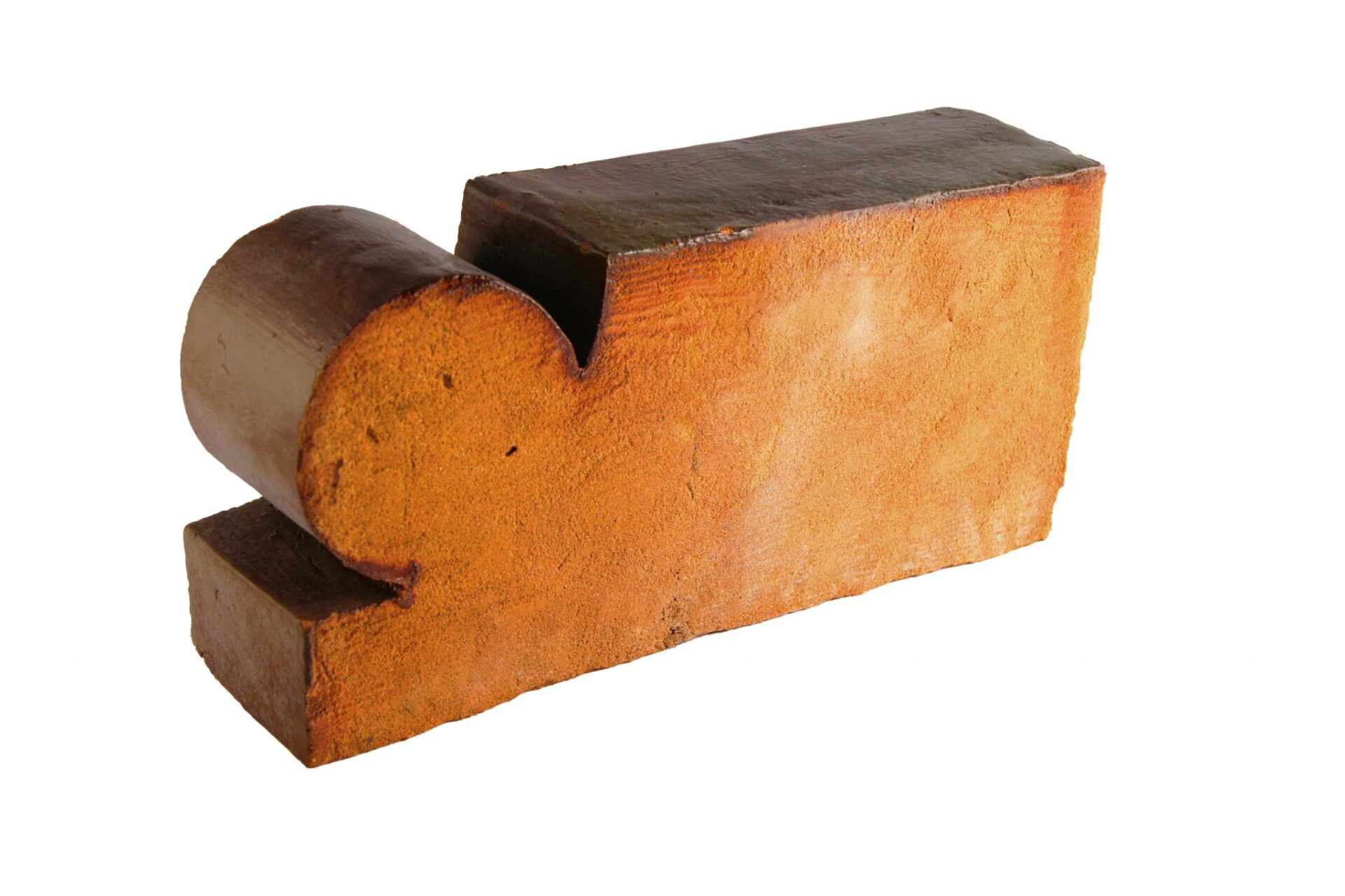 Kształtka ceramiczna, ceglana, glazurowana, dekoracyjna, ozdobna, ręcznie formowana.